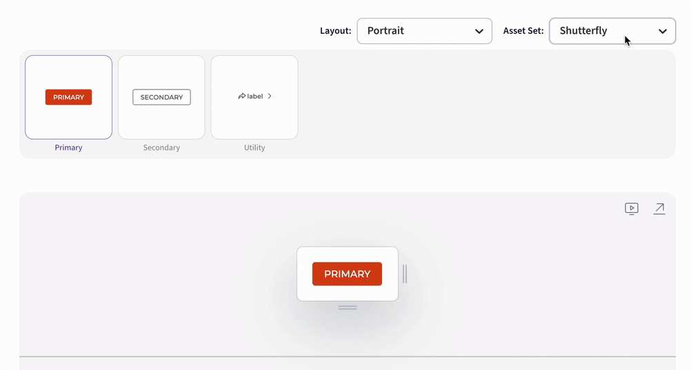 This is all about determining how the elements of the system (visual styles, UI components, underlying tooling) relate to each other both visually (how an end user might experience them in a product) and technically (how they’re actually built and implemented). It’s important to note that common elements don’t always need to look the same. For example, a core button component can be used in multiple experiences but styled completely differently for two different sub-brands, as shown below.