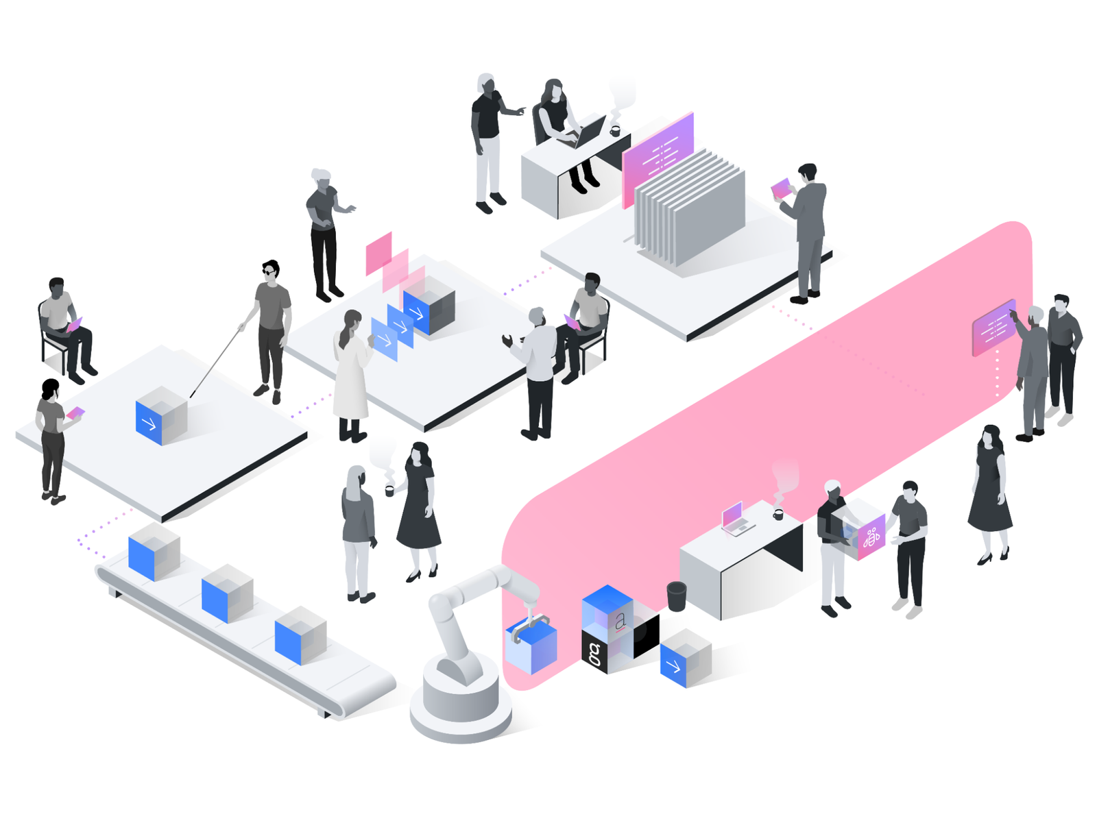 Let’s start with self-service, which should have required minimum attention from the design system team. The Carbon for IBM.com design system is open-source so we have a public GitHub repository, and we maintain a public website for usage documentation. Our sprint plans and work-in-progress designs are available on ZenHub and Box, so all IBMers can view. These decisions provide transparency and enable a large number of adopters to self-serve on getting status updates on their requests. However, those familiar with Service Design would be quick to point out these are only a surface experience, and a lot of backstage work is needed to achieve it. In order to arrive at a delightful and seamless service delivery, an end-to-end, surface-to-core perspective has to be applied to the operation. Otherwise, GitHub issues can be out of date, and Box can be a labyrinth of nested folders, and the purpose of self-service through transparency would be lost.