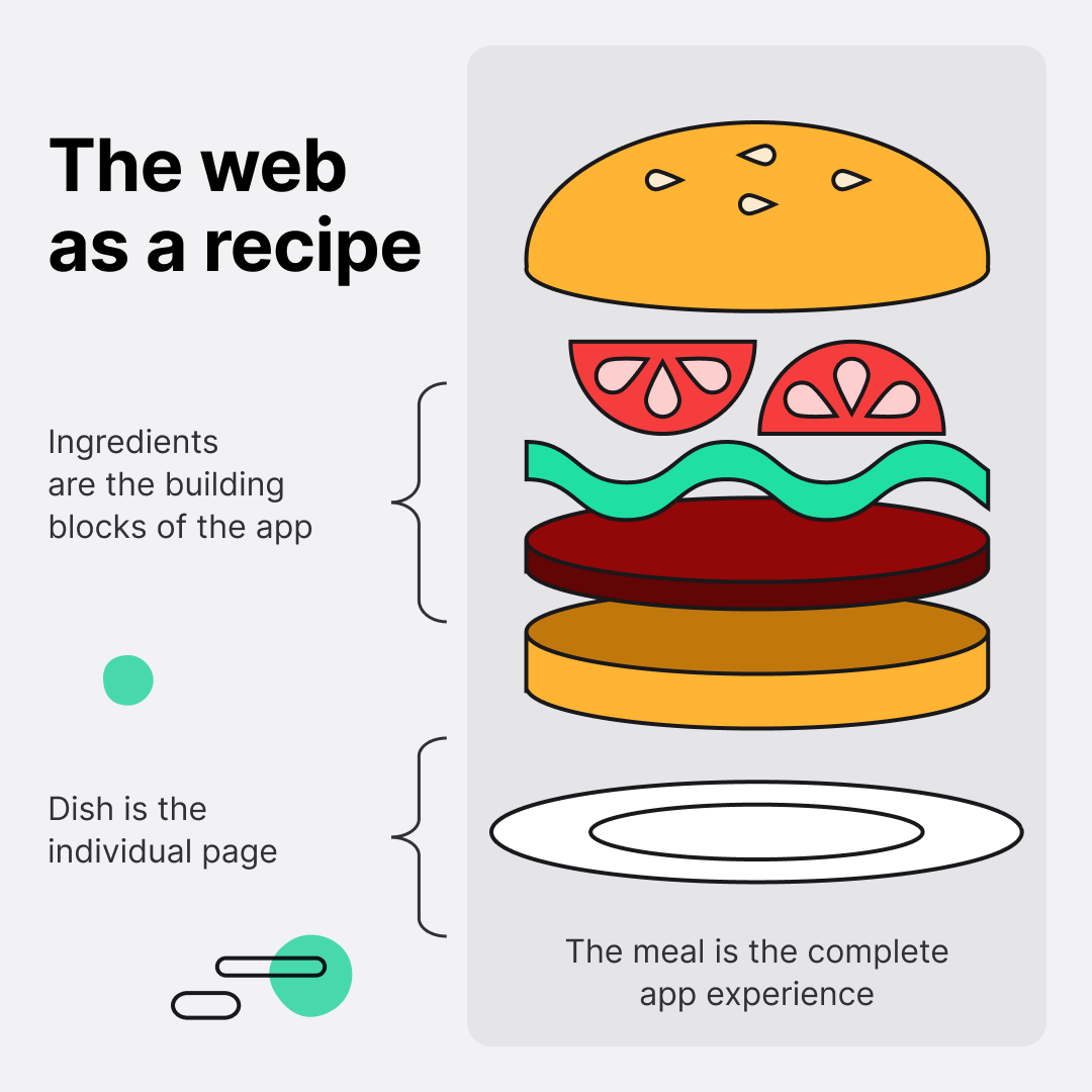 Instead of treating the web like digital posters, we could view it as a list of components, almost like a "recipe" for a website. The system will take care of how these components are displayed to the user, creating a hierarchy of component patterns that have a shared set of styles or design tokens, giving them a consistent look and feel.